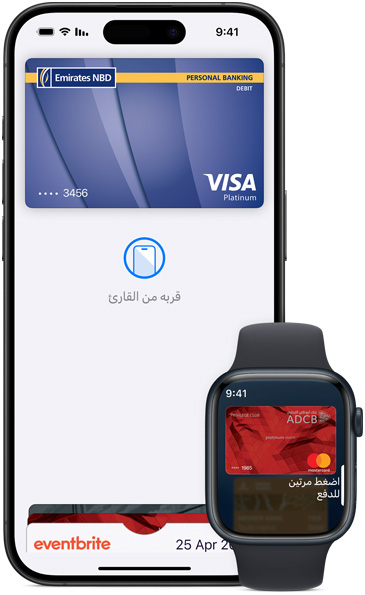 • Apple لا تشارك أرقام بطاقاتك الفعلية مع التجار ولا تخزَّن على سيرفراتها إطلاقاً، فمعلومات بطاقاتك تُربط بكل أمان بحساب Apple الخاص بك لمساعدتك على إضافة بطاقاتك وتذاكرك وإدارتها عبر مختلف أجهزتك.