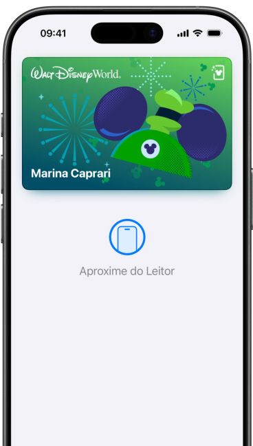 O app Carteira está no seu iPhone. Nele,