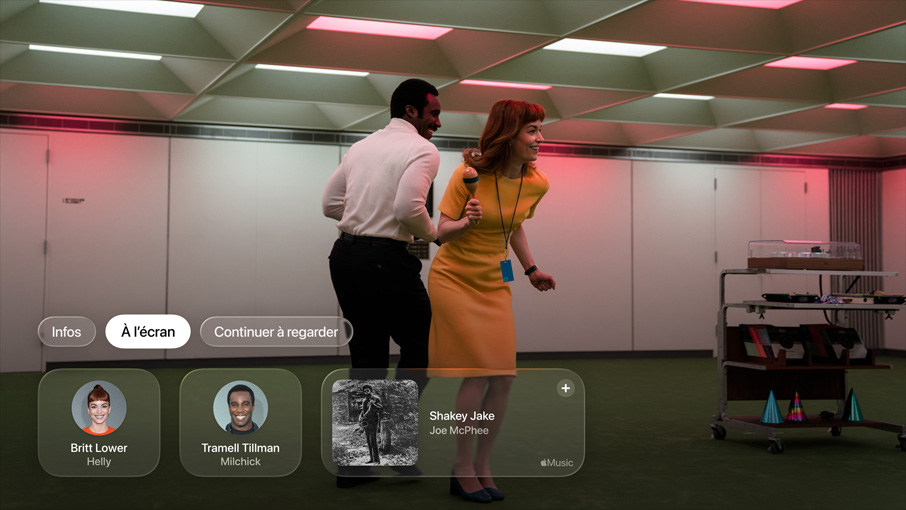 À l’écran. Obtenez des infos sur les séries et films Apple Original pendant que vous les regardez. Ouvrez les commandes du lecteur multimédia pour en savoir plus sur les interprètes à l’écran et la musique qui joue. Les détails s’actualisent automatiquement au fil des scènes. Et quand vous utilisez votre iPhone comme télécommande pour Apple TV, les données À l’écran s’affichent juste là, au creux de votre main5.