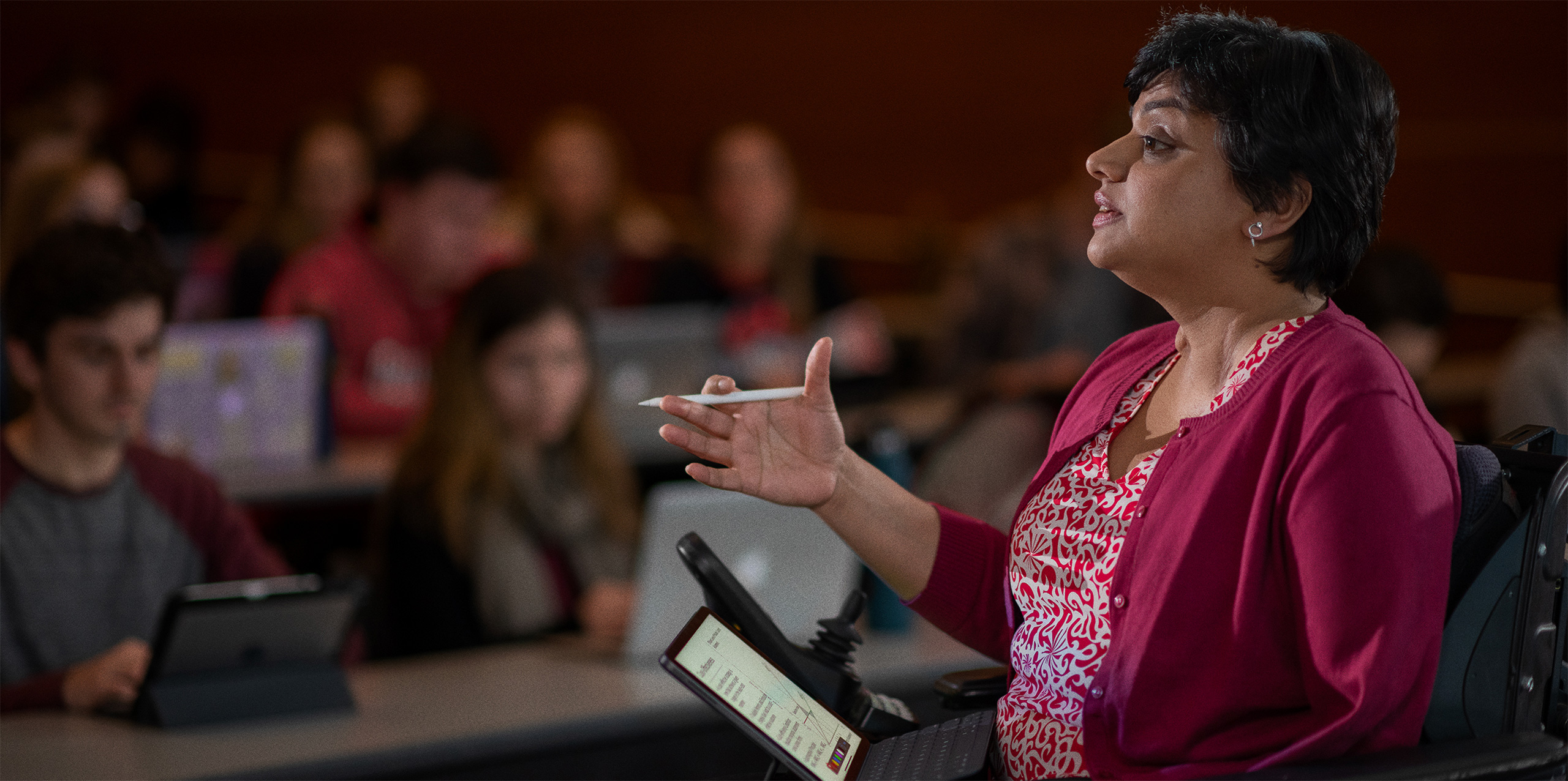 La tecnología de Apple convierte su salón de clases en un dinámico laboratorio de ideas. Gracias a las funcionalidades de accesibilidad integradas del iPad Pro, como Dictado y AssistiveTouch, la Dra. Gopalakrishnan puede participar e ilustrar contenidos en tiempo real. Y con el Apple Pencil tiene una herramienta interactiva todo-en-uno que le permite hacer bocetos, dibujar y agregar anotaciones a documentos.