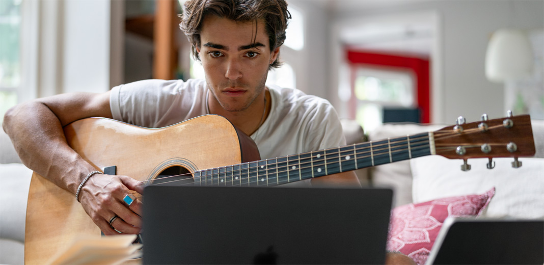 An aspiring singer and songwriter, Max uses pro apps like Logic Pro to make studio-quality music. Find out how he’s adapted to remote learning with MacBook Pro.