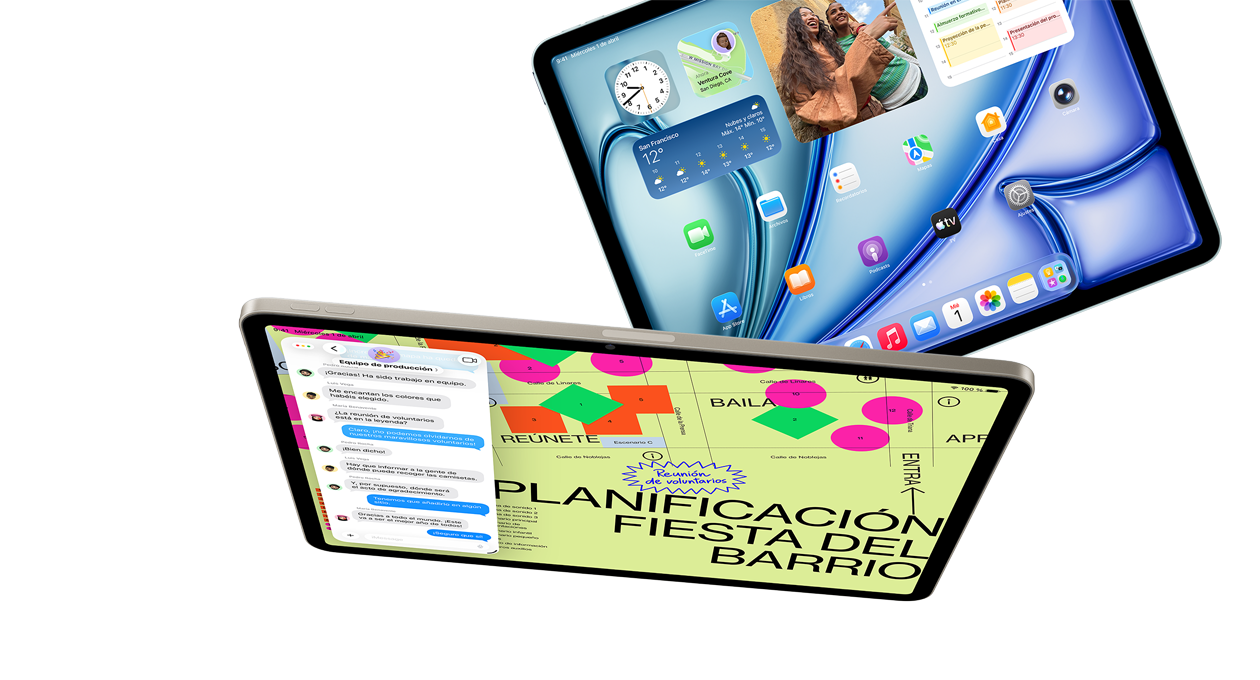 iPadOS 26 estrena Liquid Glass, un espectacular diseño que es toda una experiencia, y mejoras revolucionarias para impulsar la productividad del iPad Air. El sistema de ventanas también se ha renovado para hacerlo más intuitivo, flexible y potente que nunca. Usa apps profesionales, echa partidas a los últimos juegos triple A y atrévete con proyectos creativos de cualquier envergadura en una interfaz sencilla y táctil.