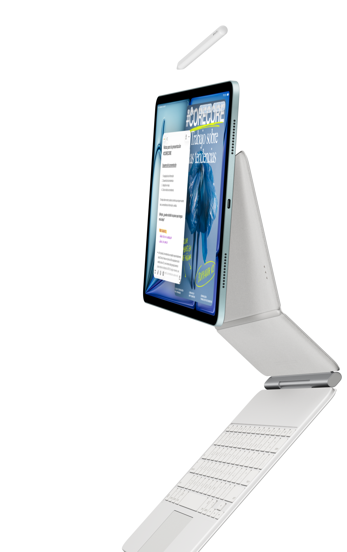 iPad Air acoplado a un Magic Keyboard para el iPad Air con un Apple Pencil Pro