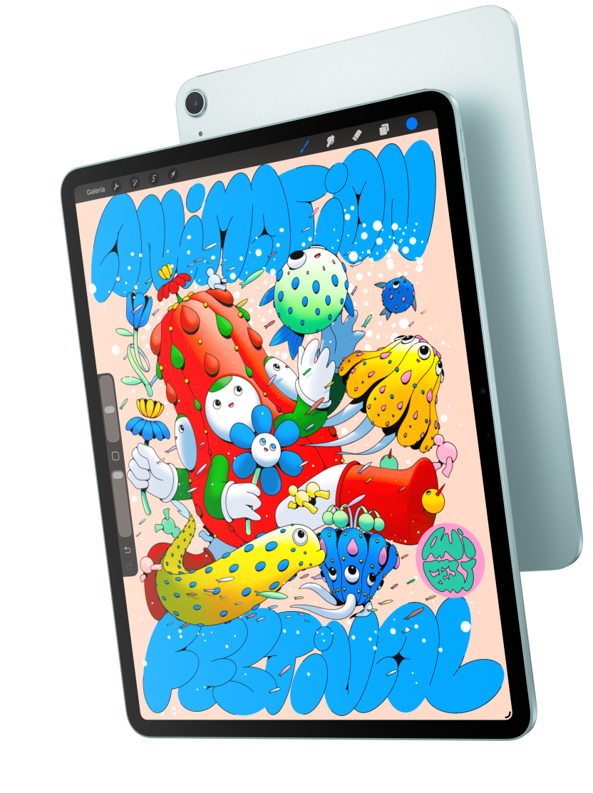 El iPad Air viene en dos tamaños: 11 o 13 pulgadas. Elijas el que elijas, puedes meterte de lleno en la acción gracias a la espectacular pantalla Liquid Retina con respuesta inmediata y a una imagen en alta resolución brillante a todas luces.