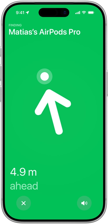 輕鬆準確找出 AirPods Pro 的所在位置。充電盒採用新一代超寬頻技術,將精準尋找功能的距離增加至 1.5 倍12配合充電盒的內置揚聲器,即使你的 AirPods 深深埋在梳化罅中,也可輕易找到。