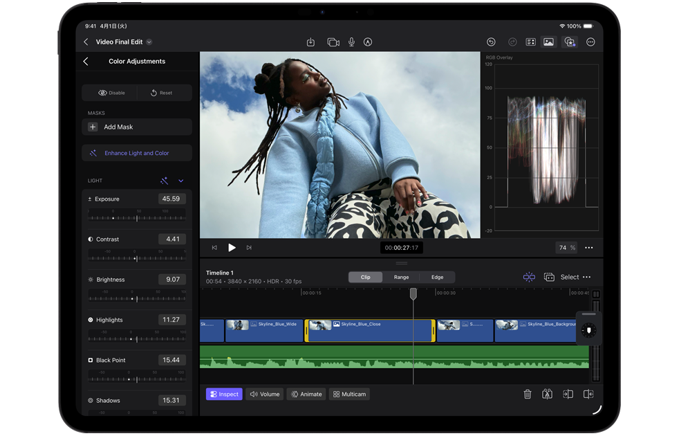 撮影する。編集する。共有する。すべてを一台で。iPad Proは、LiDARスキャナを搭載したProのカメラシステム、スタジオ品質のマイク、4つのスピーカーを備えています。4K ProResビデオを撮影したり、ポッドキャストを録音したり。入力セレクタを使って、それぞれのアプリに最適なマイクも選べます。