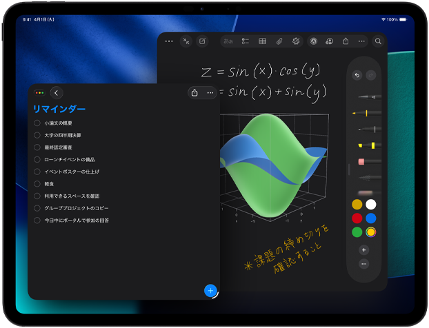 どのモデルを選んでも、そのすべてを体感できます。さらに、一段と多くの機能を使えるApple Pencil Proなら、これまでにない方法であなたのアイデアを形にできます2