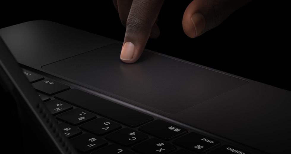 Magic Keyboardは、驚くほど快適なキーボードとトラックパッドを搭載12薄くてポータブルなデザインで、アルミニウムのパームレストも用意されています。ファンクションキー列が加わり、大きなガラス製トラックパッドは触覚フィードバックに対応。高い精度が求められる作業やMulti-Touchジェスチャーに理想的です。