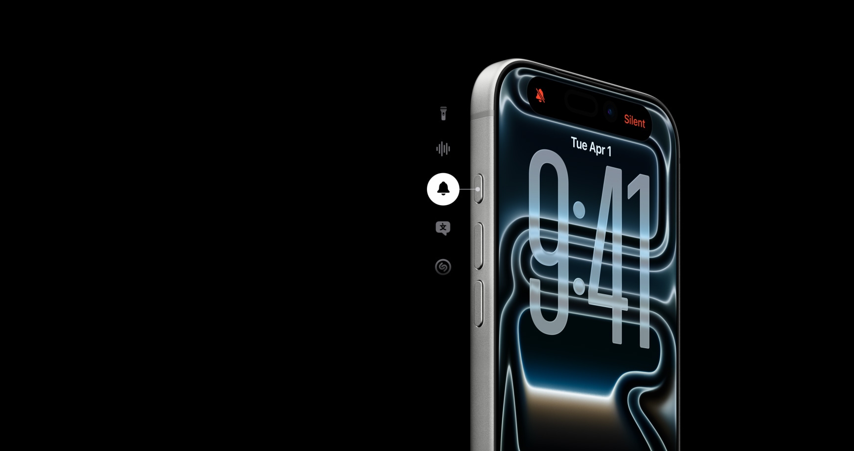 Veiksmo mygtukas. Tiesiausias kelias į mėgstamiausią funkciją. Paspausk ir palaikyk, kad įjungtum tylųjį režimą, vertimą, sparčiąsias komandas ar atliktum kitą norimą veiksmą.