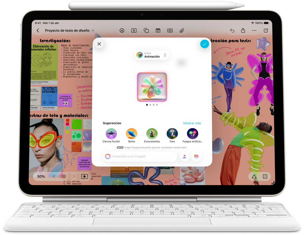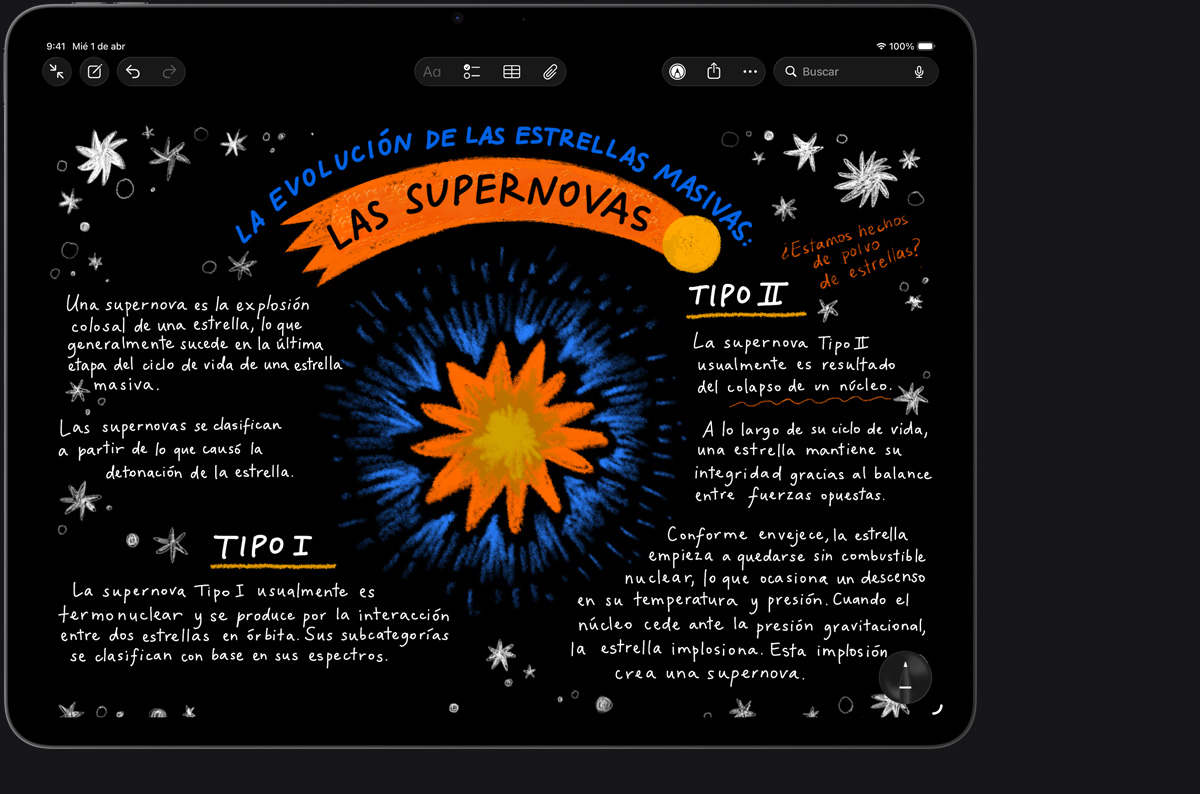 Con el Apple Pencil, la forma en que dibujas, pintas, escribes y tomas notas es intuitiva y precisa. Sentirás que usarlo es mágico gracias a su increíble precisión, baja latencia, sensibilidad a la inclinación y tecnología de detección de palma. Y el Apple Pencil Pro suma aún más posibilidades para ayudarte a darle rienda suelta a tu imaginación.2