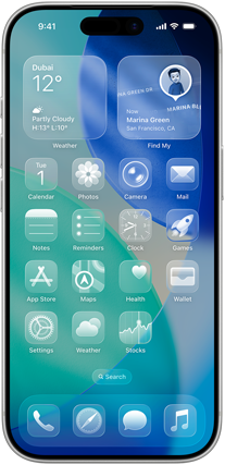 With the optical qualities of glass and a sense of fluidity, Liquid Glass brings an expressive new design to your Lock Screen, Home Screen, Control Center, apps, and more.